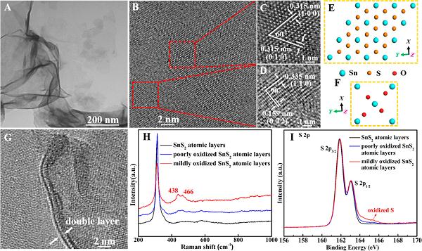 图2 适度氧化的SnS2原子层的表征