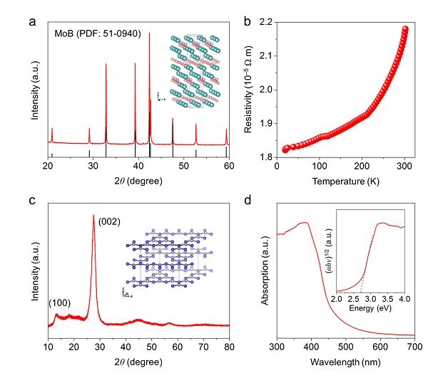 (a,b)(a)MoB的XRD和(b)变温电阻率数据