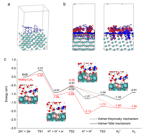 (c)MoB及MoB/g-C3N4的析氢反应路径及过渡态