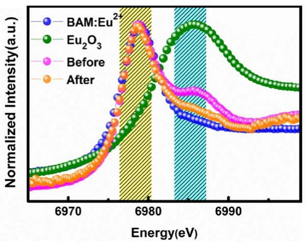图3 β-Sialon:Eu2+处理前后Eu价态的变化