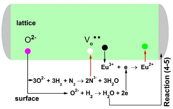 β-Sialon:Eu2+凭借其较窄的半峰宽和优异的稳定性被公认为是制造广色域LED背光源最合适的绿色荧光粉材料之一,倍受学术界和产业界的青睐和关注。由于基质晶体结构的特殊性,发光中心Eu在β-Sialon晶格中只能占据间隙位,导致有效发光中心Eu2+掺杂浓度低且部分Eu以发光猝灭中心Eu3+的形式存在。因此,高发光效率β-Sialon:Eu2+绿粉的制备极具挑战。