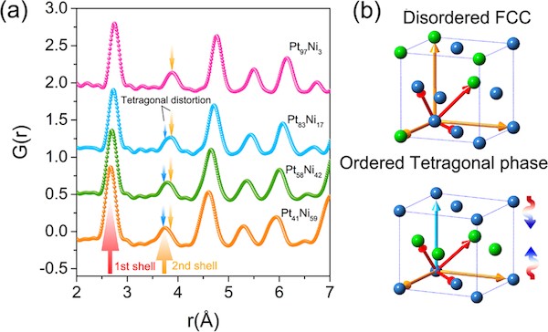 (a)室温下PtNi合金纳米颗粒原子对的分布函数(PDF)。