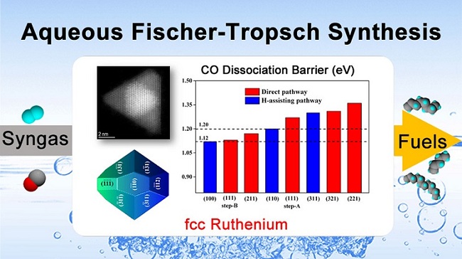 第一性原理的动力学理论计算预测高活性FCC Ru催化剂。刘进勋博士和李微雪教授首先采用密度泛函理论 (DFT) 计算了FCC晶相与HCP晶相金属Ru在热力学平衡条件下Wulff形貌以及在各暴露表面上CO解离势垒。一般认为,CO解离是费托合成的关键步骤,而CO解离势垒的大小可以反映出催化剂的费托合成活性。计算结果表明HCP晶相Ru (0001) 面的Step-B台阶位具有最低的CO解离势垒,但在真实纳米粒子体系中,这种台阶位置较难暴露。而FCC Ru晶相具有 (100)、(211) 面以及 (111) 面Step-B台阶位等一系列CO解离能垒较低的表面,有可能具有非常好的费托合成催化活性。在计算指导下,实验合成了FCC Ru催化剂。如理论预言,该催化剂较传统性能最好的HCP Ru催化剂的表观活化能高,但其比质量活性是目前报道的最高的比质量活性催化剂的性能的六倍以上。利用STEM、XAFS、XRD等手段对该FCC Ru催化剂进行相应的表征和结构模拟重建,发现合成的催化剂的确暴露较多的Ru(100)、(211)、(311)等活性面,相应活性位密度是此前最好HCP Ru催化剂的1-2个数量级以上,完全证实了理论计算的预言。这一研究结果为设计合成高效、稳定催化材料提供了重要理论支持,更显示出理论计算在预测高活性催化剂中的重要作用。(J. Am. Chem. Soc., 2017, 139, 2267–2276)