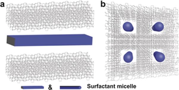 不同空间排列的表面活性剂形成的不同介孔结构示意图: