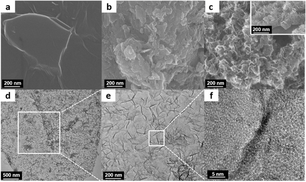 a)N-GO, b)NiCoFe-LDH, c)Ni2CoIIIFe-LDH/N-GO的SEM形貌
