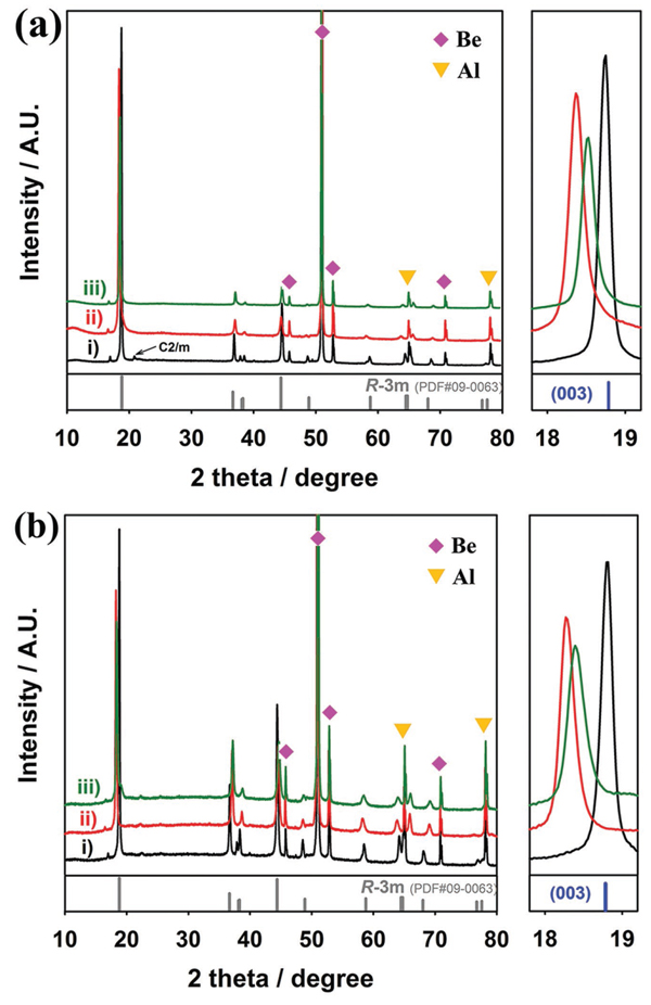(b) Li[Li0.2Ni0.16Co0.08Mn0.56]O2;