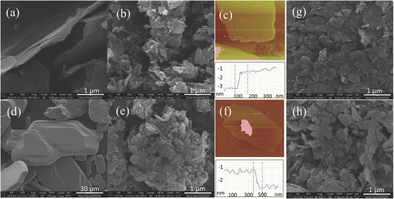 图-2. MoS2及石墨烯纳米片的SEM图像