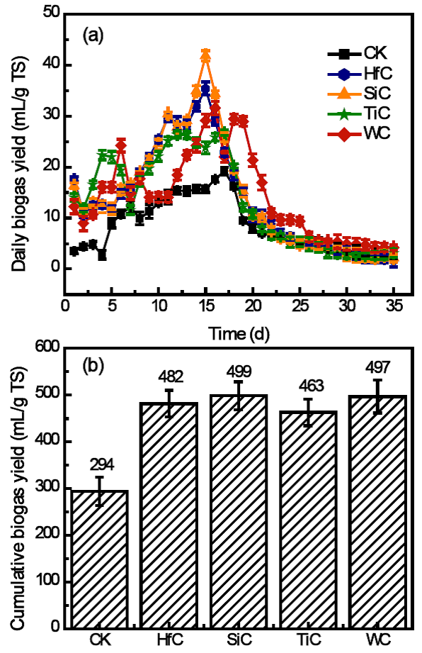 图6 纳米尺度碳化物在厌氧发酵中应用效果