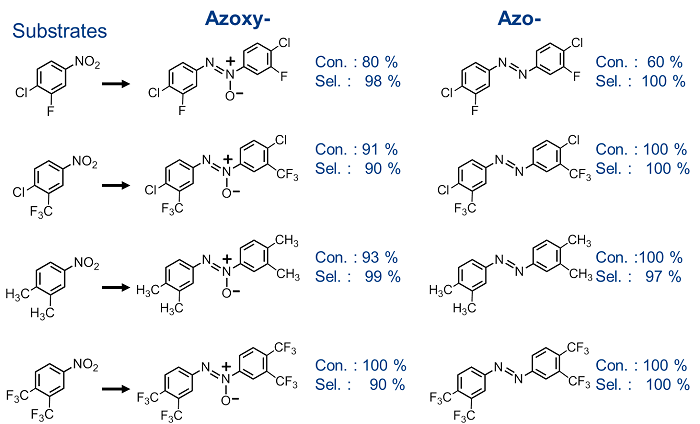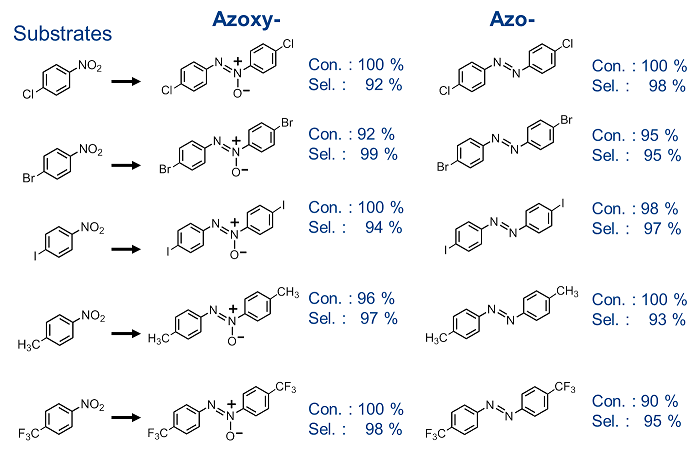 图3. 选择性还原具有不同官能团的硝基苯结果(1)