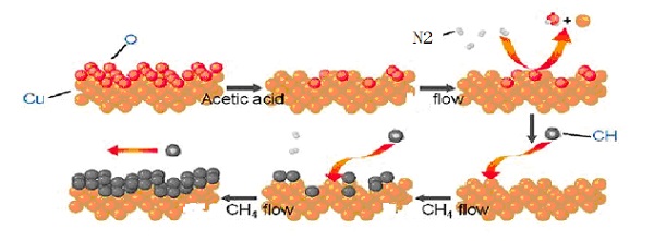 图5 CVD法制备石墨烯生长过程(碳源气体为甲烷)