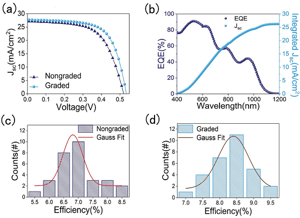 a,b)a)无梯度和b)梯度倒置QD太阳能电池