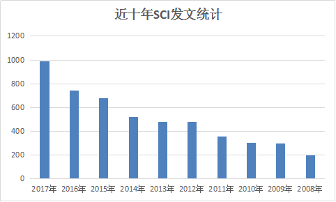 由图可以看出,该学科近十年发文数量呈现逐年上升的趋势,通过侧面我们也可以了解到,武汉理工的材料学科一直是作为强势学科发展的,近年更是加大引进人才的力度,在今年的院士评选结果中,更是有张清杰和张联盟两位教授分别当选中国科学院和中国工程院院士。有了院士的坐镇,越来越多的优秀人才加上政策的扶持,本次的学科评估中武汉理工材料学科被评为A+也就不足为奇了。