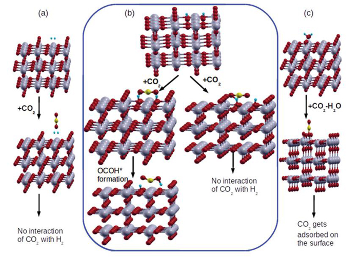 图3 CO2在与H2相互反应的[Ru(110)]-1表面吸附的示意图