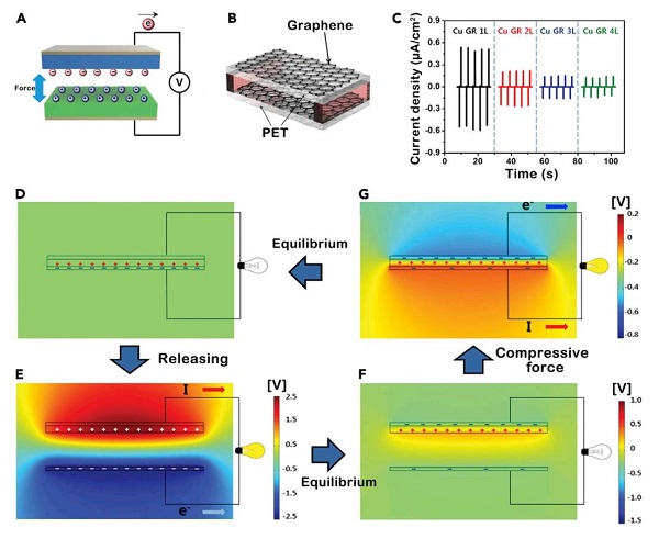 图5:基于石墨烯的发电机对摩擦力的响应。