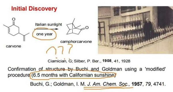 天气这么冷,先来个老梗暖场吧,奇葩的反应条件如下:1、意大利阳光照一年产物关环了,更有甚者一个modified版本,时间缩短近一半(1年→6.5个月),看来西海岸的阳光就是比地中海的充足啊,那么是不是跑到赤道附近就能大幅缩短反映时间呢?哈哈