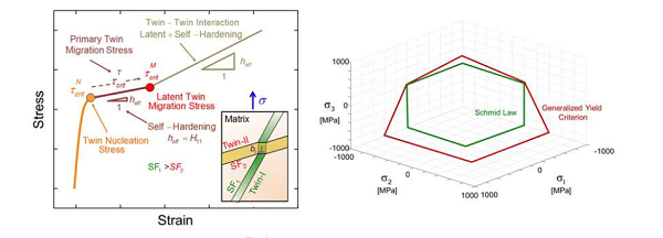 美国伊利诺伊大学厄巴纳 – 香槟分校的H. Sehitoglu(通讯作者)等人利用原子理论的各向异性,通过计算FeNiCoCrMn高熵合金的硬化矩阵系数及中尺度孪生的部分反应,推导出双孪生迁移应力,并建立了FeNiCoCrMn高熵合金中双孪生相互作用的潜在硬化基体,为高熵合金开发了一个广义的孪生迁移应力准则。