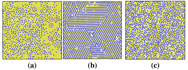 (a)模拟系统的原始构型,一个Al薄片位于两个Ni层之间,模拟盒子尺寸为Lx =Ly =13.6nm, Lz =22.3nm。该系统由316602个原子组成;