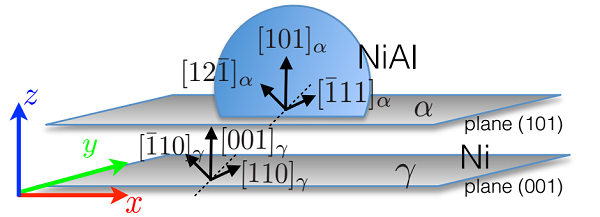 在Ni-Al纳米焊接片中的自蔓延高温合成可导致界面处形成NiAl金属间化合物。所得的显微结构是被晶界分开的多取向晶粒集合体。这是富Ni样品的典型特征,在固液界面上观察到形核现象。本工作的侧重点在于控制晶粒取向的重要作用。作者考虑了固态Ni界面的三个低指数取向,通过分子动力学模拟对晶粒形核生长情况展开表征分析。除了对分子动力学模拟结果的分析,作者还提供了转变的完整表述,并对观测结果给出了简洁的几何学解释。最终,结果显示Ni基底的取向在形核和生长方面发挥着重要作用。对该产物进行织构分析的特殊工具也可以进一步发展应用于NiAl金属间化合物的表征。分子动力学模拟过程中,更一般地,这些工具可以用于绘制生成相晶体学取向的图谱。