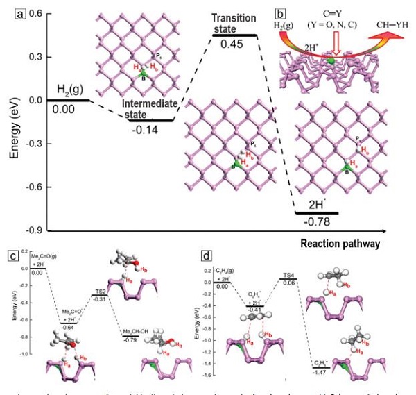 图5 黑磷烯在加氢反应制备饱和烷类有机分子中扮演催化剂的角色
