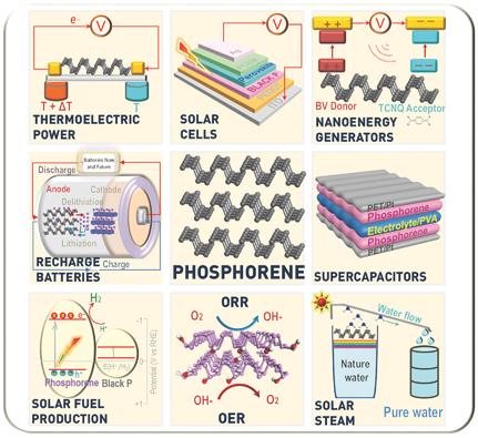 本篇综述,提供了磷元素的同素异形体,黑磷烯的类型与性质,及其新型的能源领域的应用。首先,介绍的是快速增长的知识领域,以及在制备方法上的突破。其中,其结构的各项异性的本质,容易参与反应的表面活性位点,以及较大的层间距,使黑磷烯成为一个在多种能源领域得到热捧的明星材料,例如电化学储能领域,包括锂离子电池和钠离子电池以及超级电容器,又比如能源转换领域,包括光伏发电,热电发电器件,再譬如光催化上的应用,涵盖了制氢气和析出氧气反应等。