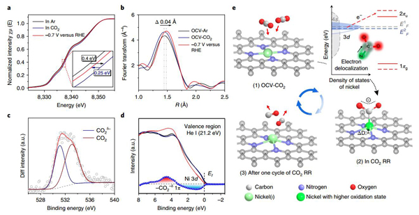团队展示了具有高CO2还原活性的原子分散的低价Ni(I)中心。低价Ni(I)单原子的非均相催化剂的发现,不仅在电化学CO2还原中表现出单原子多相催化作用,而且还提供了在CO2还原中活性位点几何结构和结构转变的独特见解,其将对未来的CO2催化剂的发展至关重要。