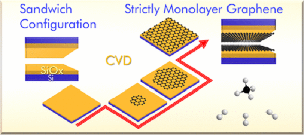 要在绝缘的二氧化硅衬底上合成大面积层数(单层)均一的石墨烯是比较困难的。而利用金属基底,石墨烯被成功制备,并得到普遍采用。但是,其在电子器件应用上,(金属衬底制备的石墨烯)需要一个转移步骤,这会破坏并污染石墨烯薄膜。因此,在绝缘基底上直接制备大面积均匀质量的石墨烯引起了人们极大的研究热情。