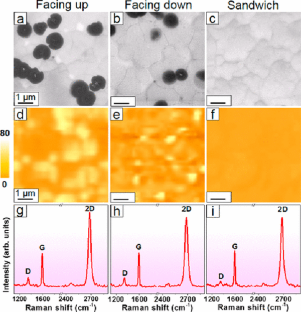 图3 三种衬底配置对于石墨烯生长的影响:其中,三明治结构最好