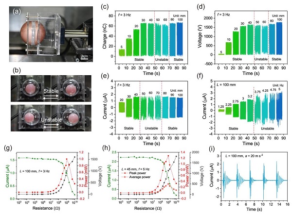 图2. 单个TENG单元在模拟波浪驱动下的输出性能表征