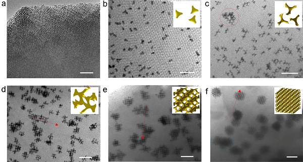 图3. 分子筛模板中制备的多种形貌的Au纳米颗粒。图片源自Nature Communications.