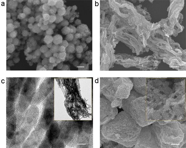 下面图3显示的是在分子筛模板中制备的各种形貌的Au颗粒,从骨头状的纳米颗粒到多孔超结构颗粒,可控性的制备多种纳米结构形貌。