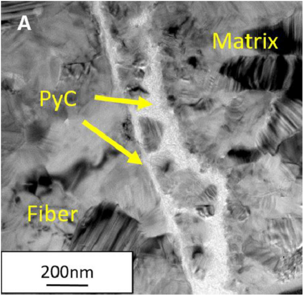 来自加州大学伯克利分校的J. Kabel教授(通讯作者)在Composites Part B上发表了一篇题为“Micro-mechanical evaluation of SiC-SiC composite interphase properties and debond mechanisms”的文章。作者通过小型机械测试、原子力显微镜和透射电子显微镜分析PyC(热解碳)相界面对于复合材料整体力学行为的影响。厚PyC层表现出119MPa的脱粘剪切强度和0.63的内摩擦系数;而薄的PyC层表现出436MPa的脱粘剪切强度和0.11的内部摩擦系数。结果不符合莫尔-库仑标准,因而作者提出了基于莫尔-库仑方程的唯象方程。