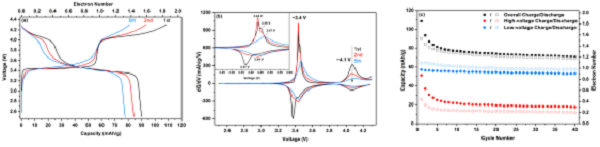 具有丰富储量基础的钠离子电池在大规模储能系统的应用中具有巨大的发展潜力。考虑到规模储能系统对电池循环寿命的严格要求,聚阴离子型磷酸盐因其稳定的结构受到广泛的关注。然而,这类正极材料中含磷酸盐阴离子基团,其质量比容量往往偏低。因此,探索含聚阴离子化合物中过渡金属离子的多价态电化学反应具有重要的理论意义和实用价值。法国Masquelier组曽研究了Al3+取代的Na3V1.5Al0.5(PO4)3中V的多价态反应。他们发现,与Na3V2(PO4)3不同,Al取代后出现一个新的~4.0 V平台,展示了实现V3+/V4+/V5+ 可逆反应的可行性。然而他们仅实现不到1个电子的可逆反应,也没有进行循环稳定性的研究。