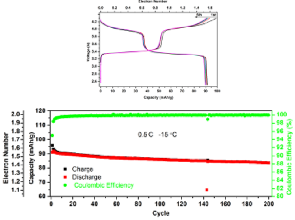 图4 -15ºC下优异的电化学可逆性及循环性能