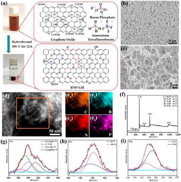 图1 BNP-GH的合成示意图和SEM/STEM/XPS表征