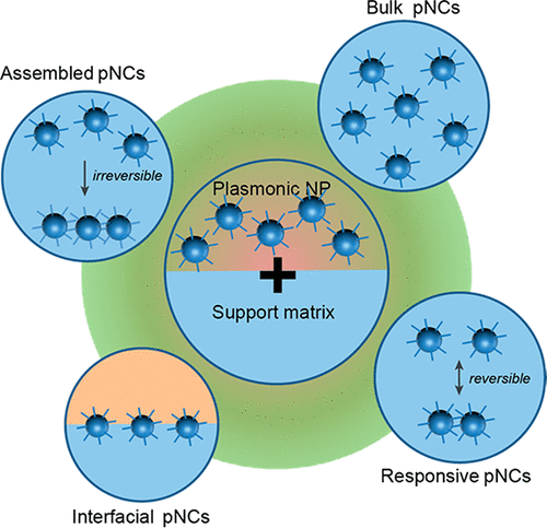 等离子体纳米结构广泛用于工程光学材料和器件结构的构建块。等离子体纳米复合材料(pNCs)是一类新兴的材料,它们将这些纳米结构整合到分层结构和多功能的系统中。近日,加州大学圣迭戈分校Andrea R. Tao(通讯作者)等人介绍了通过修饰等离子体激元和基体成分,以及通过控制整个复合材料的纳米到宏观形貌,这些pNCs可以高度定制。纳米级装配在表现出复杂或响应光学功能的pNCs的设计中起着特别重要的作用。 由于其可扩展性和可调性,pNCs为工程新的等离子体材料和轻松集成到光电子器件结构提供了一个多功能平台。并提供了对pNC结构,设计,制造和光学功能方面最近取得的成就的全面解析,以及它们在光电和传感中的应用实例。