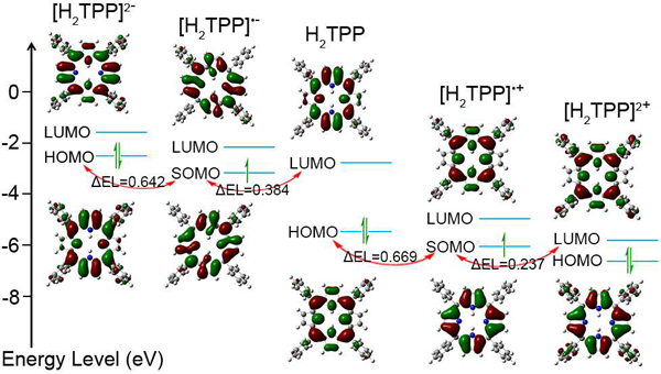 通过HOMO-SOMO-LUMO图表验证了H2TPP的稳定性及其不同的氧化还原态。
