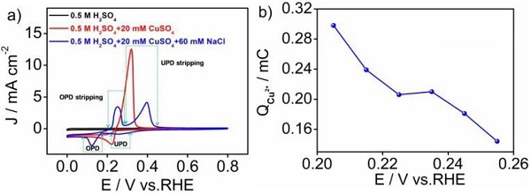 b)沉积的Cu 在不同电位下剥离所需的电荷;