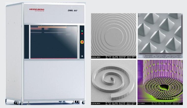 高精度的微细结构可以通过电子束直写或激光直写制作,这类光刻技术,像“写字”一样,通过控制聚焦电子束(光束)移动书写图案进行曝光,具有很高的曝光精度,但这两种方法制作效率极低,尤其在大面积制作方面捉襟见肘,目前直写光刻技术仅适用于小面积的微纳结构制作。近年来,三维浮雕微纳结构的需求越来越大,如闪耀光栅、菲涅尔透镜、多台阶微光学元件等。据悉,苹果公司新上市的手机产品中人脸识别模块就采用了多台阶微光学元件,以及当下如火如荼的无人驾驶技术中激光雷达光学系统也用到了复杂的微光学元件。这类精密的微纳结构光学元件需采用灰度光刻技术进行制作。直写技术,通过在光束移动过程中进行相应的曝光能量调节,可以实现良好的灰度光刻能力。