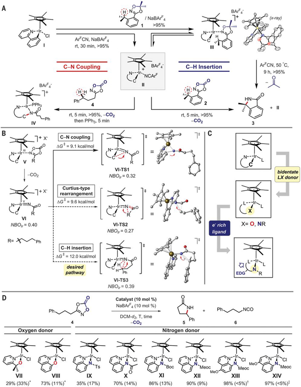 北京时间2018年3月2日,韩国高等科学技术研究院(KAIST)Sukbok Chang团队和韩国基础科学研究所(IBS)Mu-Hyun Baik(共同通讯作者)团队以题为“Selective formation of γ-lactams via C–H amidation enabled by tailored iridium catalysts”发表在了Science上。团队报告了相关理论和机制研究,以优化一类五甲基环戊二烯基铱(III)催化剂抑制竞争途径。密度泛函理论计算表明,辅助二齿配位体的立体电子性质被更多的电子供体调节,以降低有利于所需反应的C-H插入壁垒。这些催化剂通过sp3和sp2 C-H酰胺化将各种各样的1,4,2-二恶唑-5-酮(易于从羧酸获得的羰基亚硝酸酯前体)转化为相应的γ-内酰胺,并具有出色的选择性。氨基酸衍生物和其他生物活性分子的后期成功官能化进一步证明了该方法的可行性。