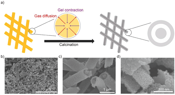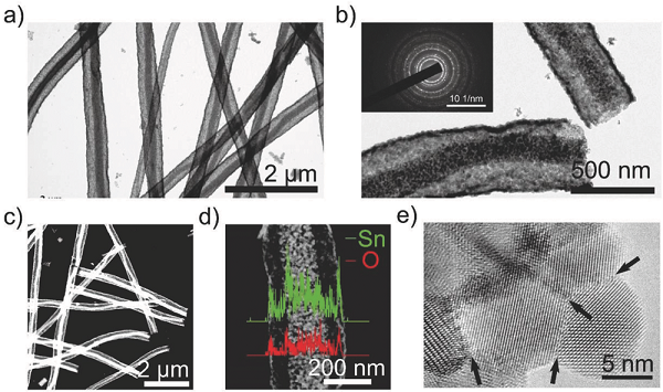 图一. 管包线(WIT)结构的SnO2制备机理及SEM表征