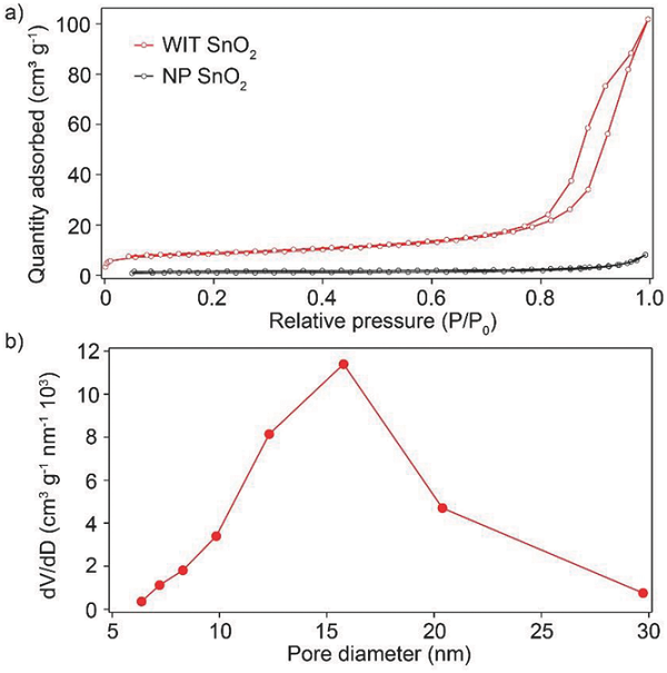 图三. WIT结构与纳米颗粒(NP)结构SnO2的BET分析