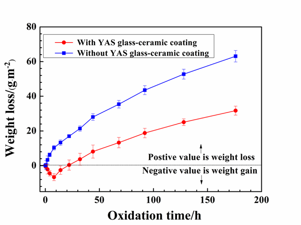 图十. 包覆YAS玻璃陶瓷层和未包覆的样品,在1673K下的等温氧化曲线