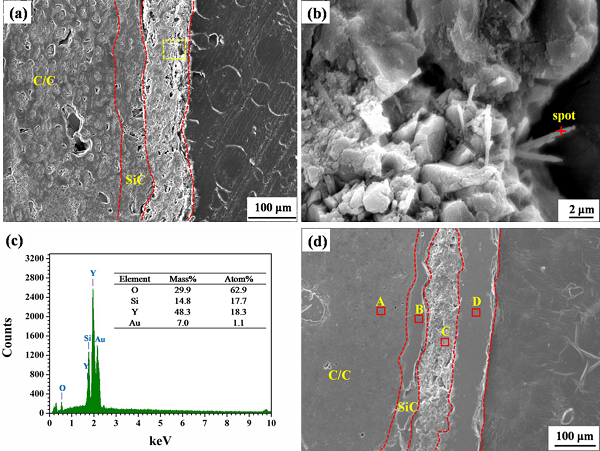 文献链接:A novel design of oxidation protective β-Y2Si2O7 nanowire toughened Y2SiO5/Y2O3-Al2O3-SiO2 glass ceramic coating for SiC coated carbon/carbon composites(Corros. Sci., 2018 DOI: 10.1016/j.corsci.2018.02.054)