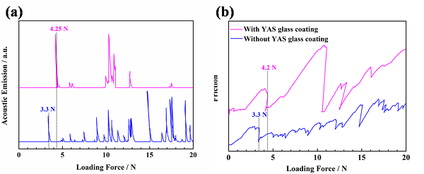 图六. 包覆YAS玻璃陶瓷层和未包覆的样品抗滑载声发射信号曲线