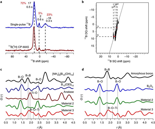 (d) 使用B2O3和无定形硼控制材料2和3的附加PDF分析。