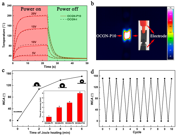 图4 OCGN的焦耳热性能与超疏水性的恢复