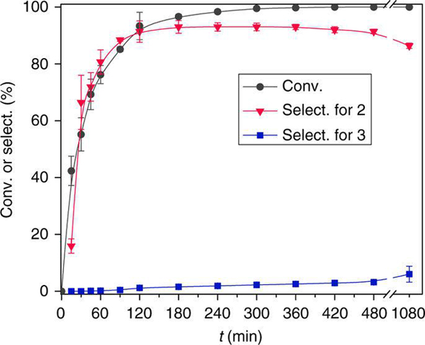 图6 4-羟甲基苯甲醛经HAc改性的MnOx催化转化的时间过程