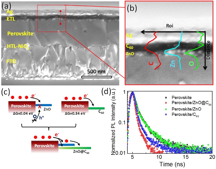 图2. ZnO@C60双电子传输层表征