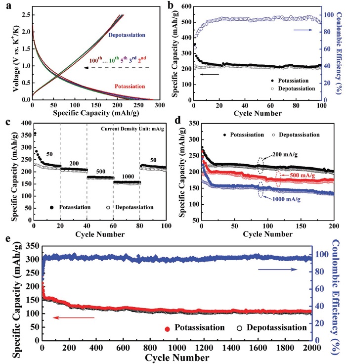 当今新型电池技术的迅速发展催生了锂元素的大量开采利用。但是锂源在地壳中的含量不高,限制了二次电池的进一步发展。与锂相比,钠源和钾源丰度更高。并且,K/K+还原对的电势比Na/Na+的低,使得钾离子电池拥有比锂离子电池更高的放电电压和能量密度。