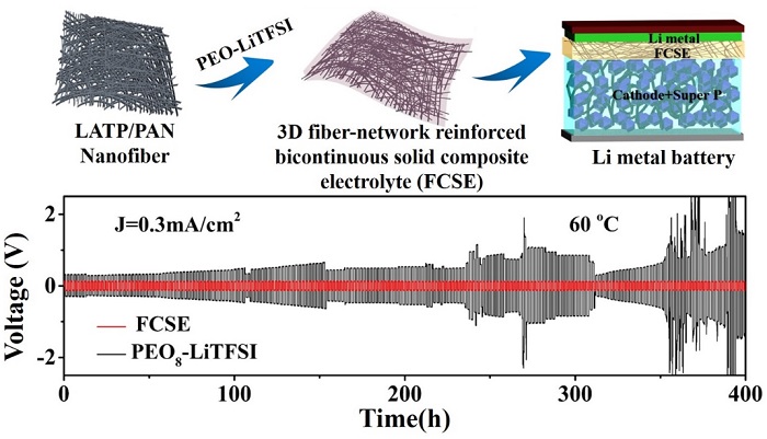 文献链接:3D fiber-network reinforced bicontinuous composite solid electrolyte for dendrite-free lithium metal batteries(ACS Applied Materials & Interface, 2018, DOI: 10.1021/acsami.7b18123.)